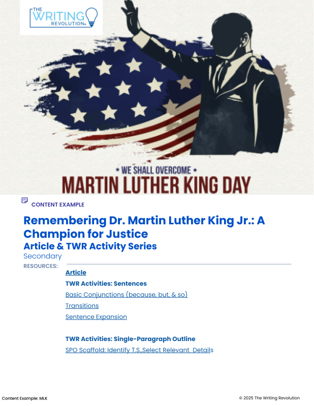 (Elementary) – Remembering Dr. Martin Luther King Jr. – Article & Series of TWR Activities