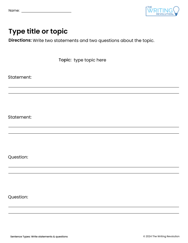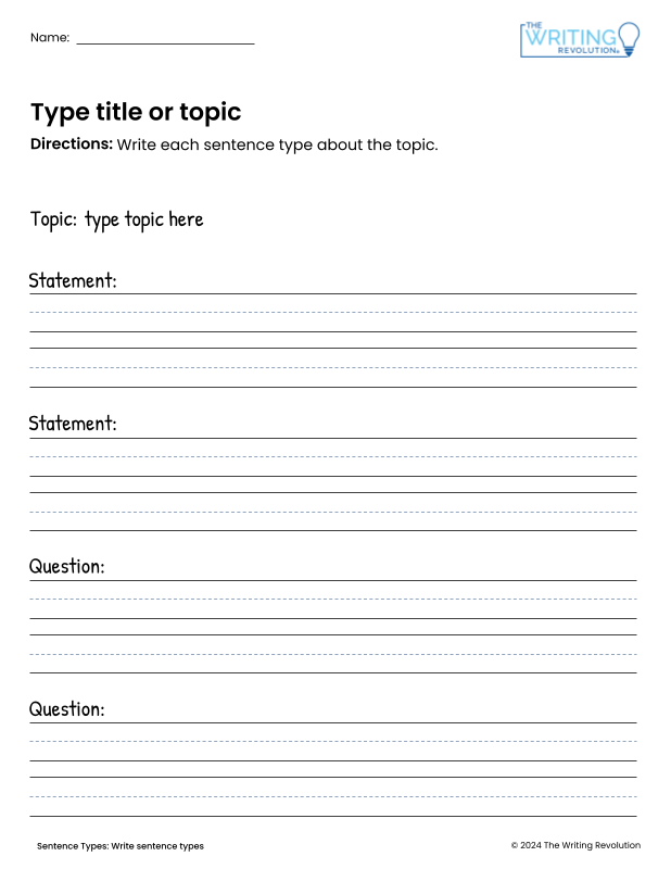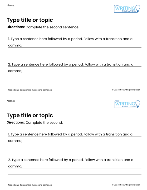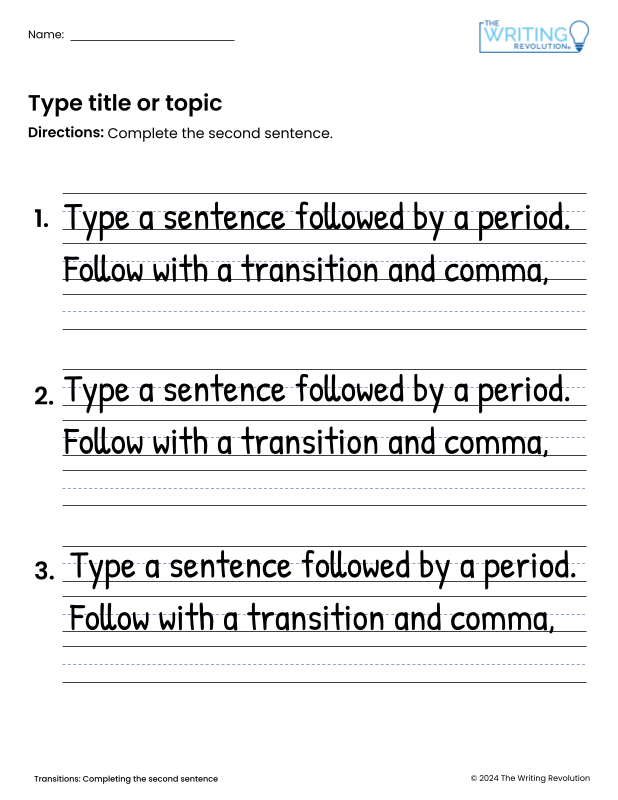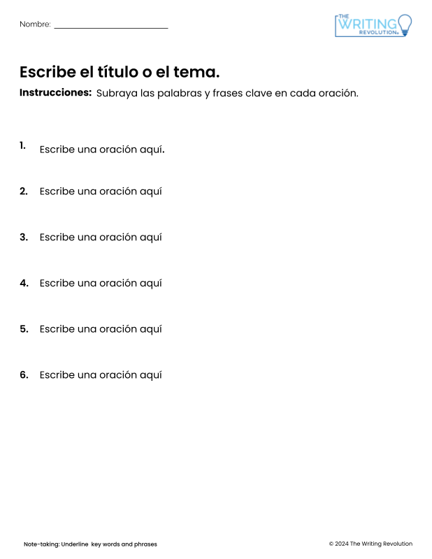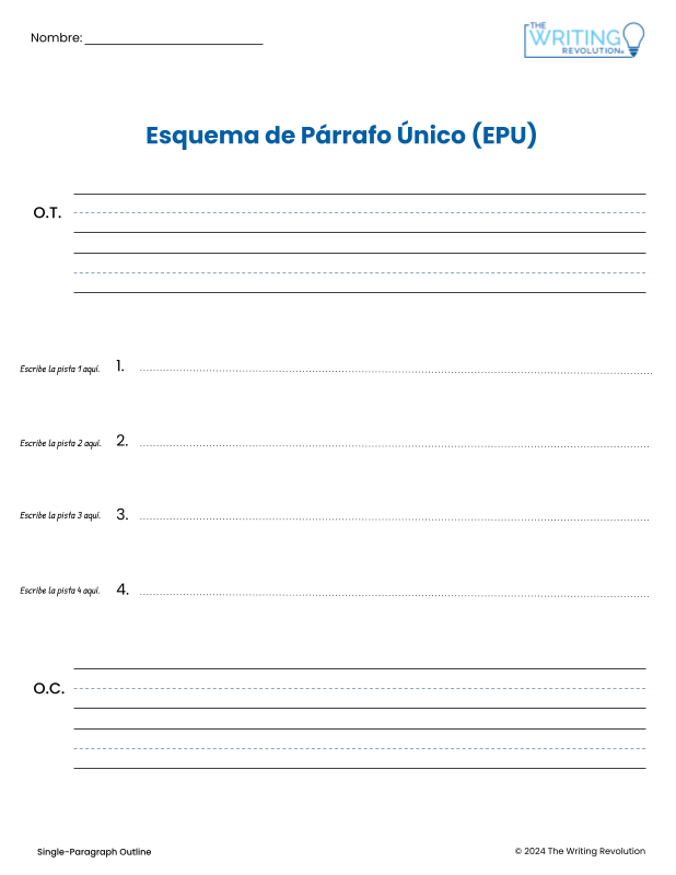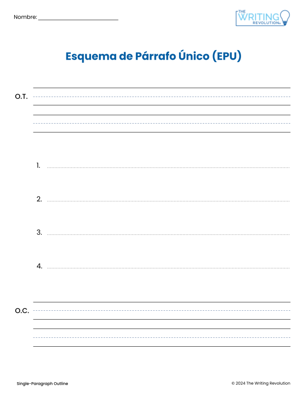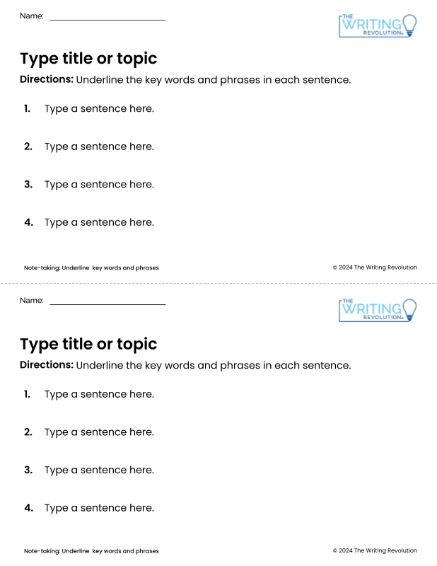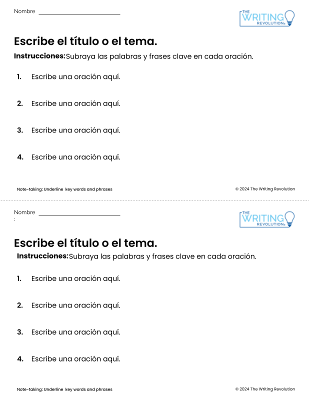 Blank Single-Paragraph Outlines (SPO), Scrambled Sentences, Sentence Types, Basic Conjunctions: because, but, so, Transitions, Appositives, Underlining Key Words & Phrases, Vary Vocabulary, Improve T.S. & C.S., Converting Notes to Sentences, Converting Sentences to Notes, Taking Notes