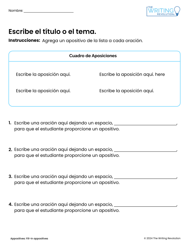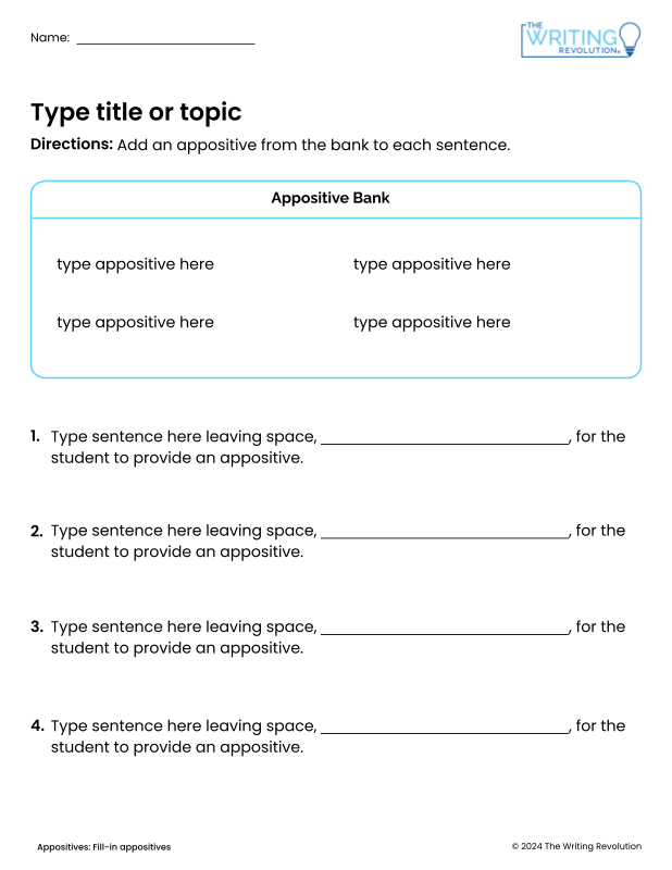 Appositives (fill-in appositives) – Elementary (Ms. Davis)