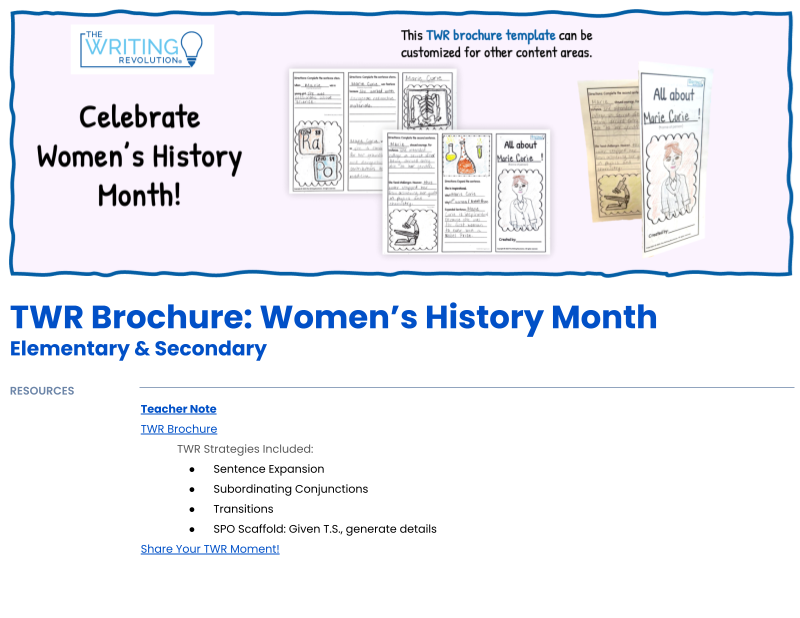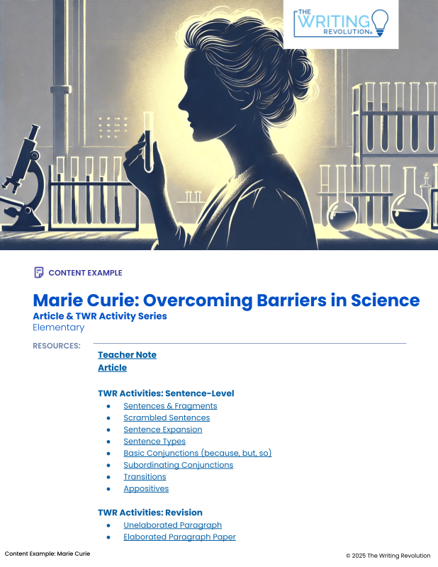 (Elementary) Women’s History Month: Marie Curie – Article & Series of TWR Activities