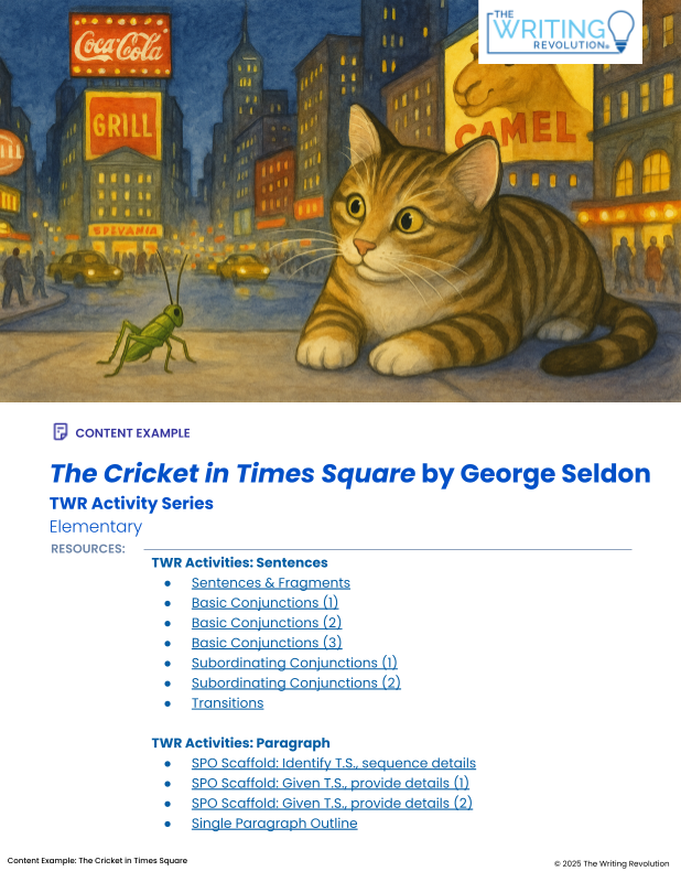 (Elementary) The Cricket in Times Square – TWR Activity Series
